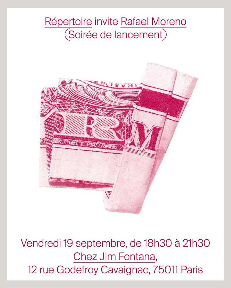 Soirée de lancement du cinquième numéro de Répertoire magazine. Pour ce retour, c’est la parole et le travail de Rafael Moreno qui sont mis à l’honneur dans un format plus long de quelques pages, plus riche d’une couleur et d’un texte inédit de Lou Ferrand.